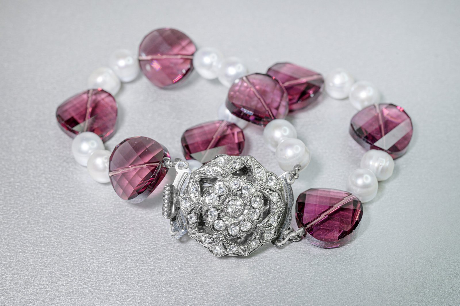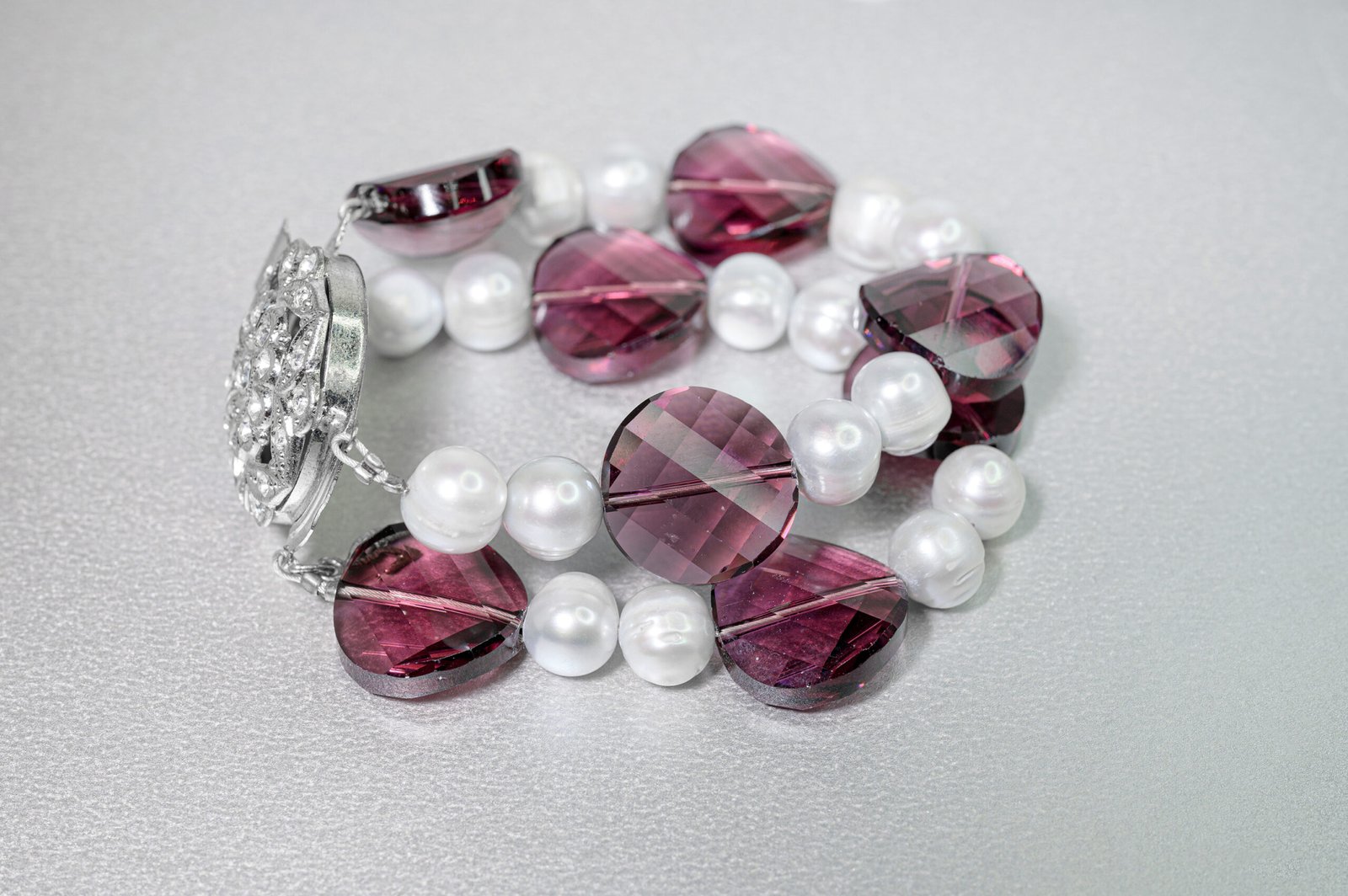 Διπλό τυλιχτό βραχιόλι με κρύσταλλα Swarovski και μαργαριτάρια γλυκού νερού και κούμπωμα διακοσμημένο με κρύσταλλα.