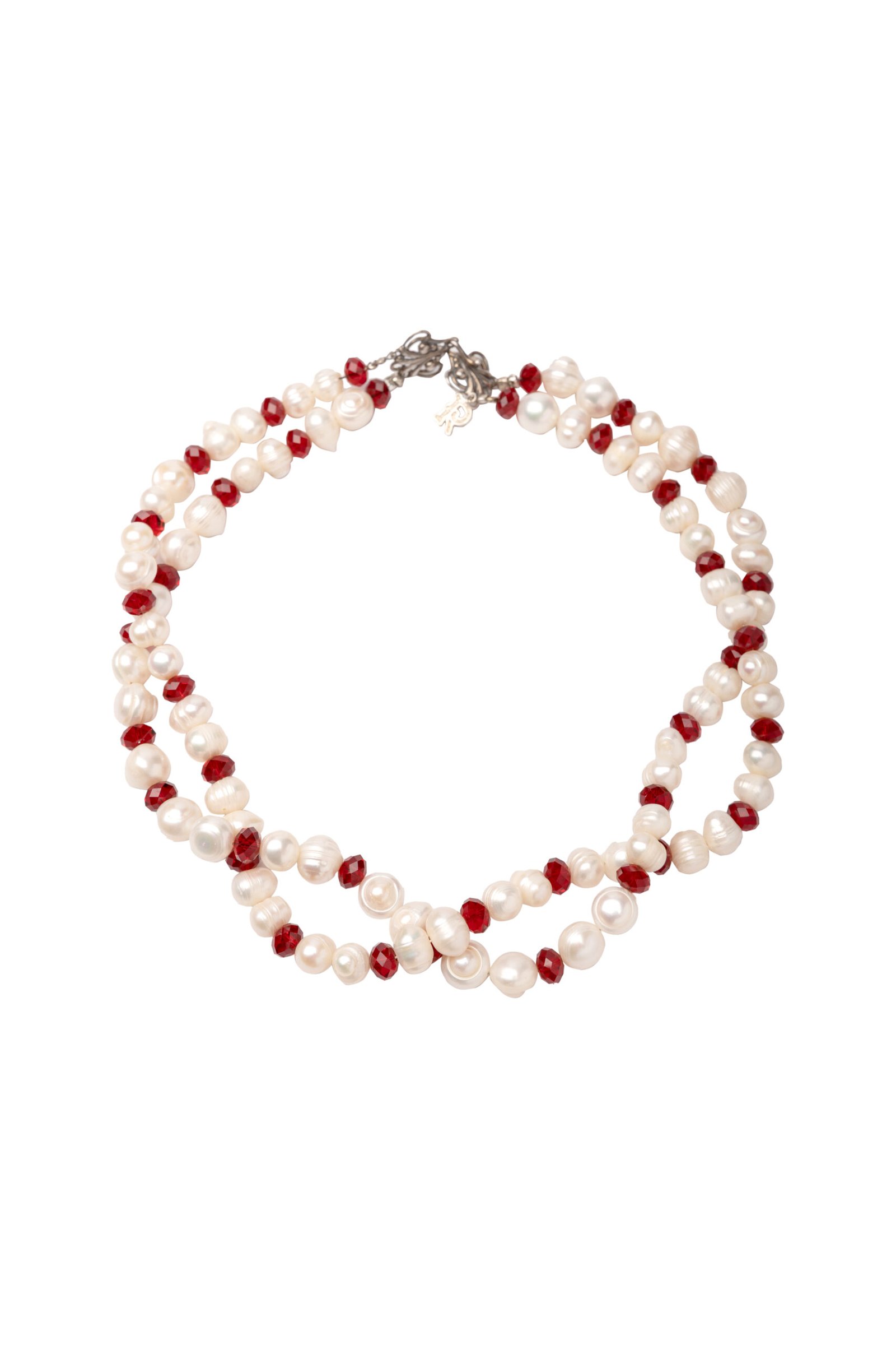 Διπλό κολιέ από μαργαριτάρια γλυκού νερού με κόκκινα κρύσταλλα Swarovski.