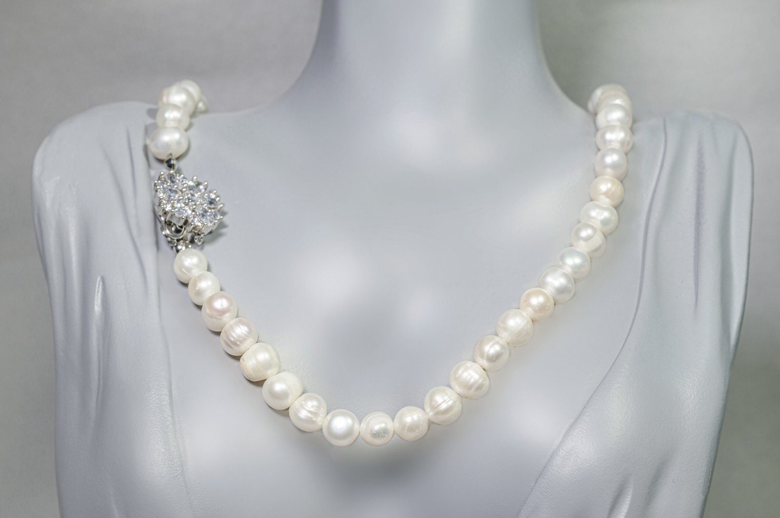 Κολιέ από μαργαριτάρια γλυκού νερού με ασημένιο ροδιωμένο κούμπωμα διακοσμημένο με ζιργκόν.