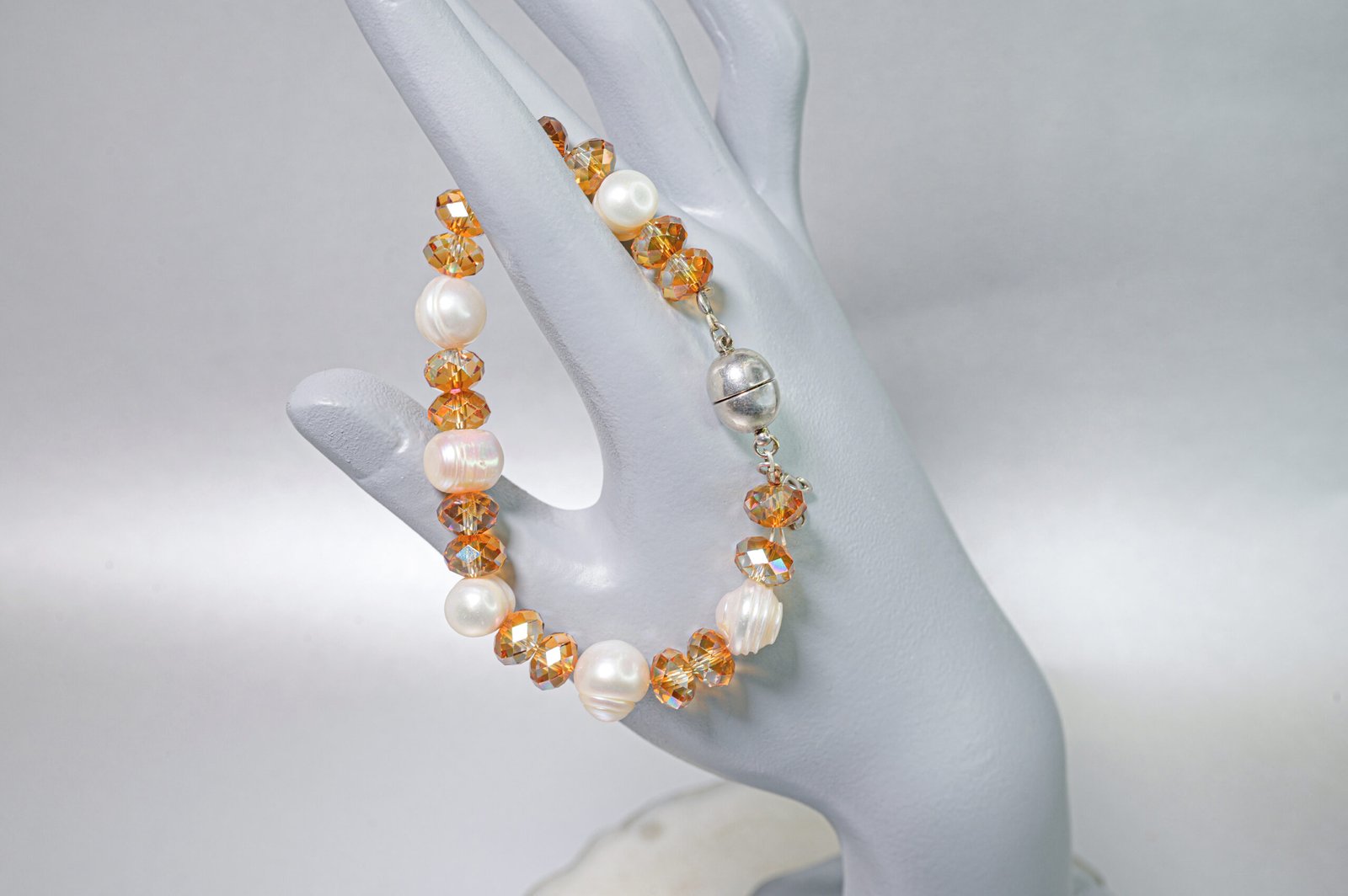 Γοητευτικό βραχιόλι με εναλλαγή κρυστάλλων Swarovski και μαργαριταριών γλυκού νερού και μαγνητικό κούμπωμα ss.