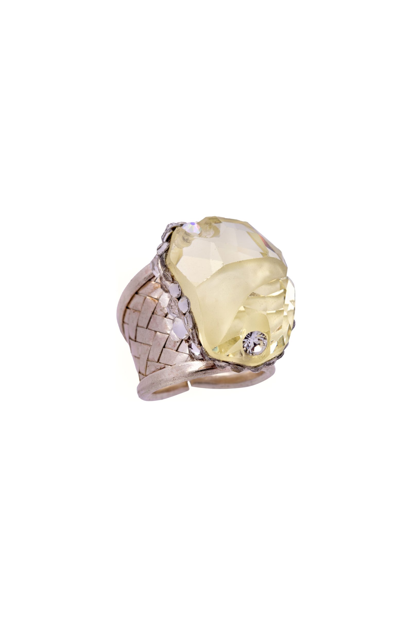 Αυτό το εντυπωσιακό δαχτυλίδι με κρύσταλλο Swarovski Citrine και βάση από ανοξείδωτο ατσάλι 925 αποτυπώνει την ουσία της τολμηρής κομψότητας με τον ξεχωριστό σχεδιασμό και τα λαμπερά υλικά του.